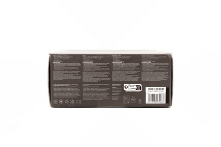 The technical specifications are printed on the left side in 4 languages and just over a product description in many more.