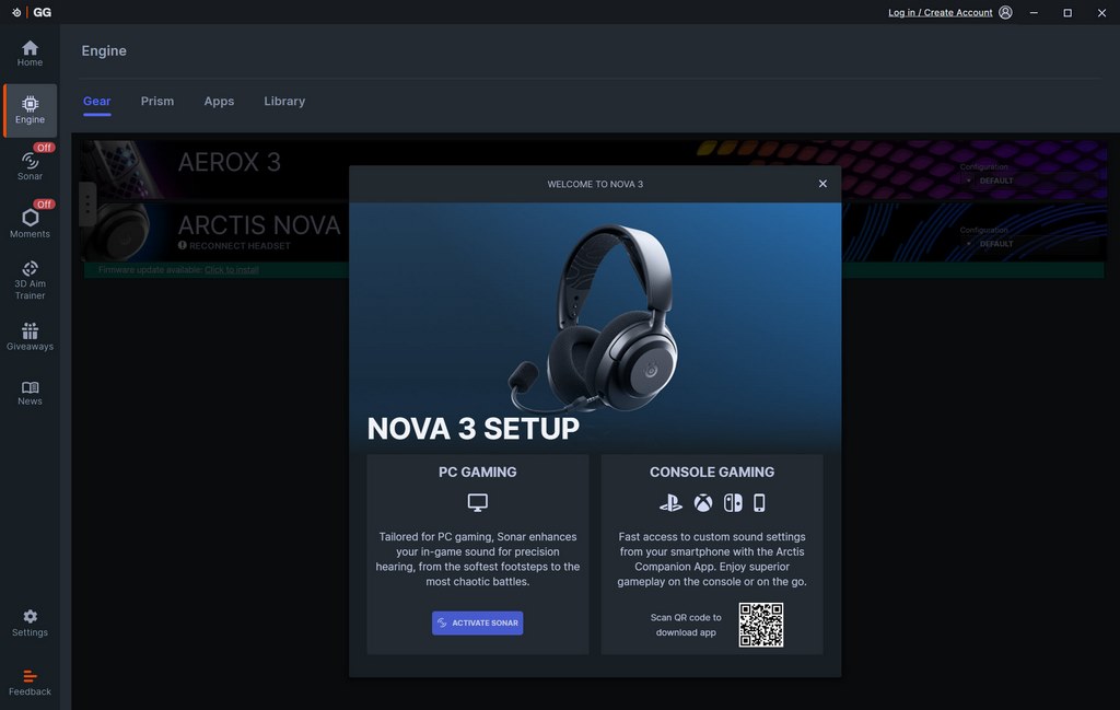 There are two ways to "control" the Arctis Nova 3P Wireless, either via the Engine software when used with a PC or via the SteelSeries smartphone app for when used with consoles (in my case since I tested it on PCs I used the Engine software).