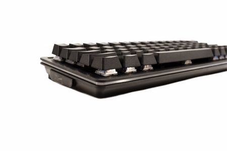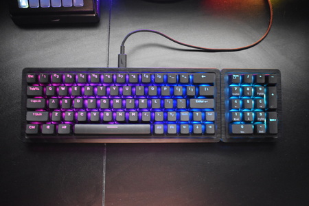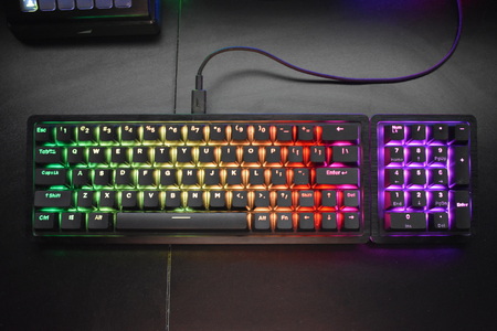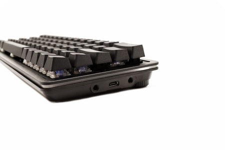 Typically, MOUNTAIN decided to go with the floating keys design for easier cleaning (also notice the LED strip going around the keyboard and the USB-C cover on the left side).
