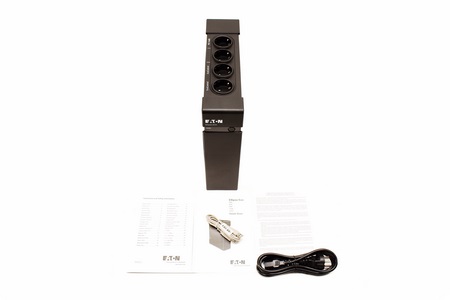 The Ellipse ECO line of UPS currently includes 500/650/800/1200/1600VA models (available with either Schuko, FR or IEC outlets) which unlike the higher end PRO line they all follow the standby/offline topology. Now as I've stated in previous reviews standby/offline topology may not be quite as good as line interactive (due to voltage regulation, battery life and even power transfer) but compared to just even 10 years ago standby/offline models have improved considerably and so they are more than sufficient for most uses, including PCs (still for very sensitive equipment I'd clearly go with either line interactive or online topology models). The Ellipse ECO series also features automatic surge reduction (protection against power surges, IEC 61643-1 standard), telephone line & modem/fax protection (two RJ11 connectors), front activity LEDs, horizontal or vertical placement, EcoControl function (automatically shuts down attached devices of specific outlets when your workstation/system is turned off) and a USB host port via which you can use Eaton's UPS Companion software (enables safe system shutdown, energy usage metering and easy configuration of UPS settings). The Ellipse ECO 1600VA/1000W model which I have here with me today sports a total of 8 Schuko outlets (4 battery powered and surge protected and 4 surged protected only) and uses two 12V 9.0Ah maintenance-free sealed lead-acid batteries (charge/discharge/storage temperature range: -15°C/45°C) easily replaceable by the end user.