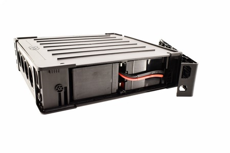 At the front we find the on/off button and two activity LEDs next to it (the capacity is also printed here).