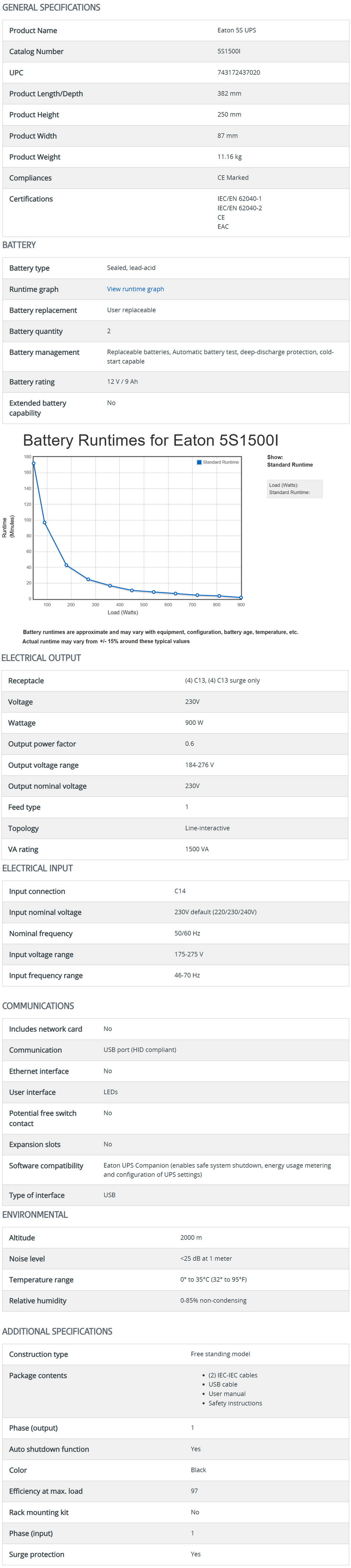The 11.16Kg heavy 5S 1500i UPS measures 382mm in length, 87mm in width and 250mm in height.