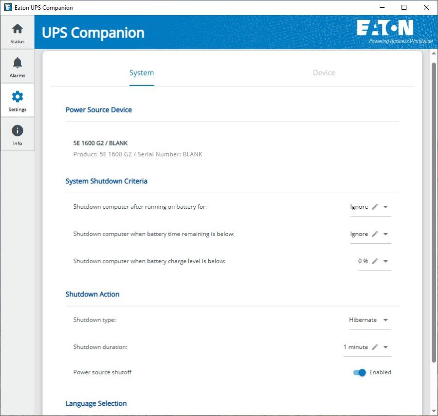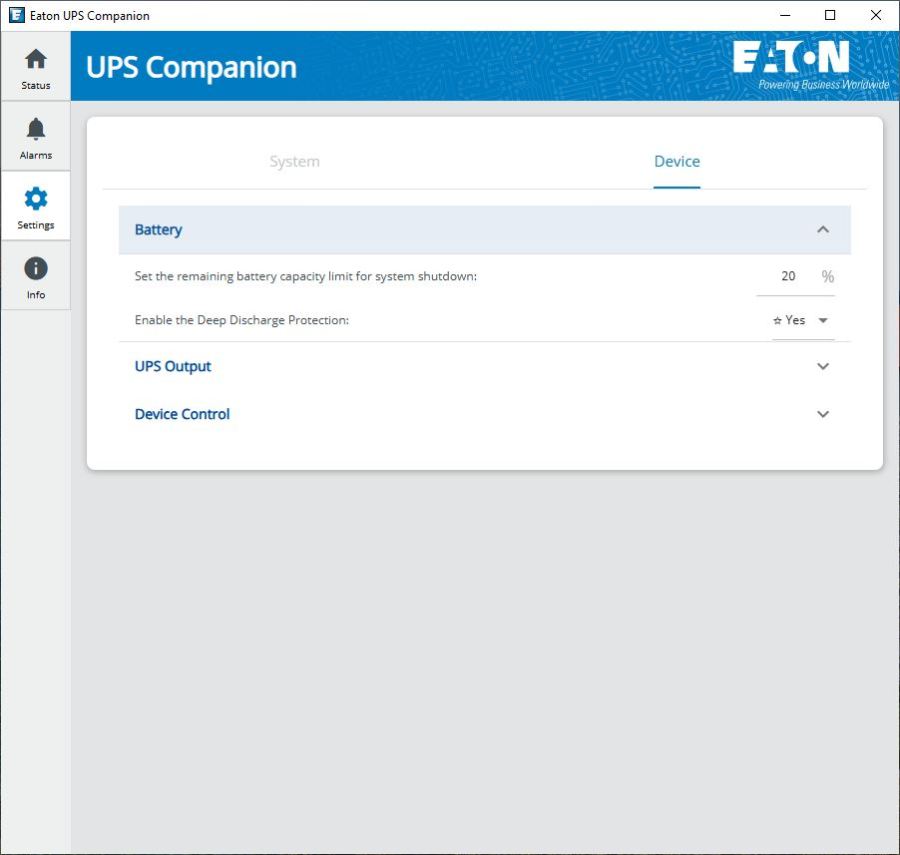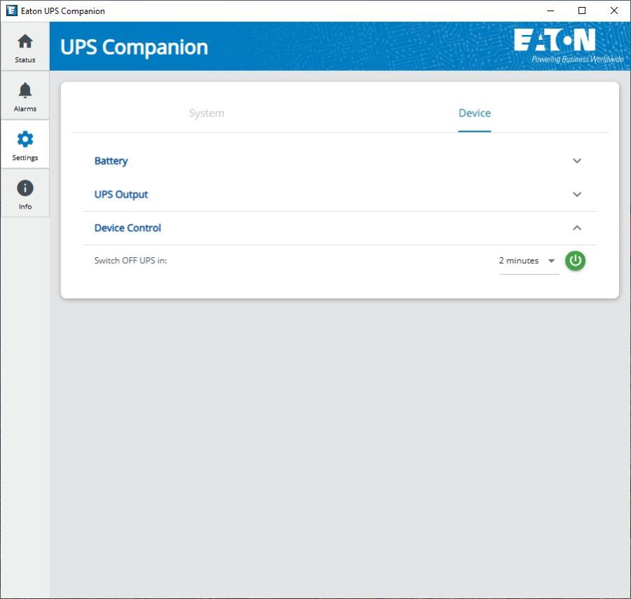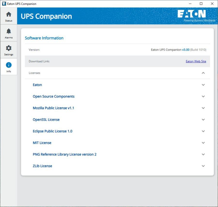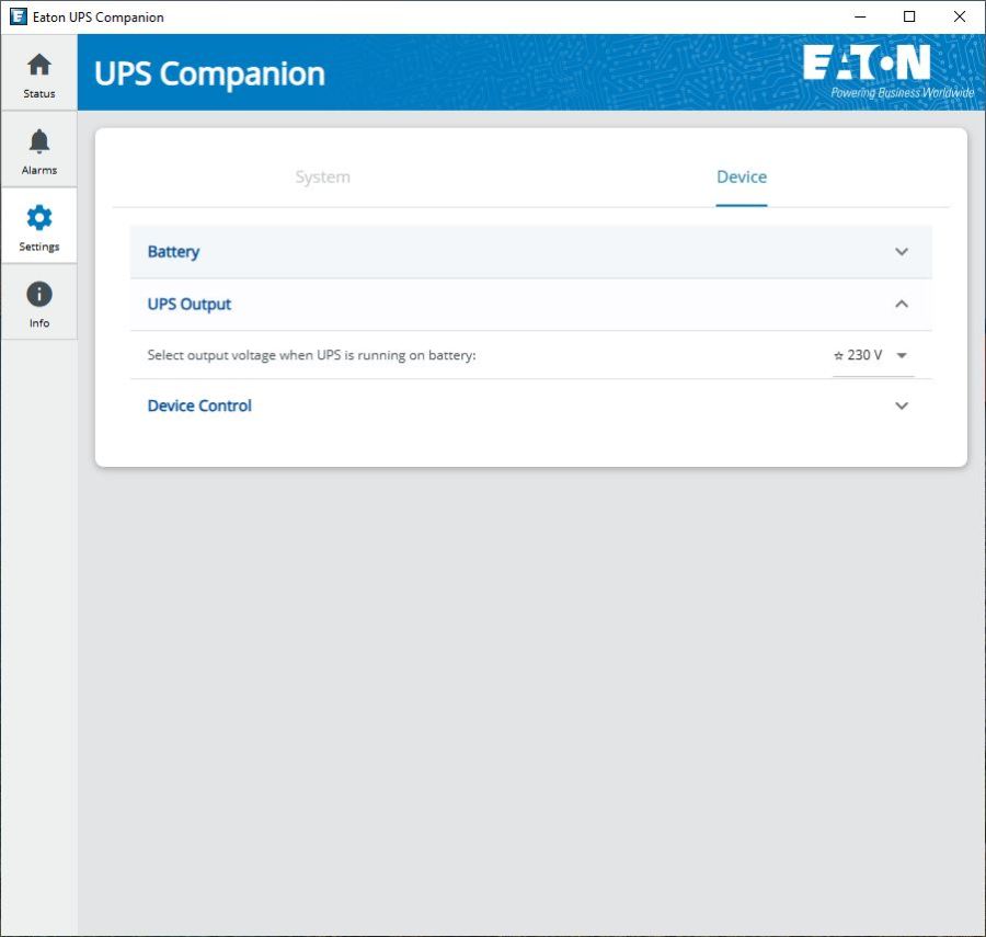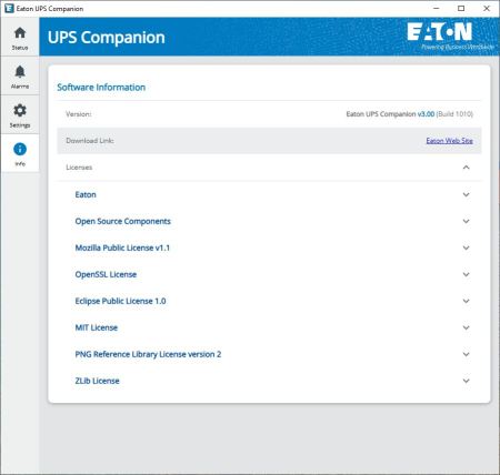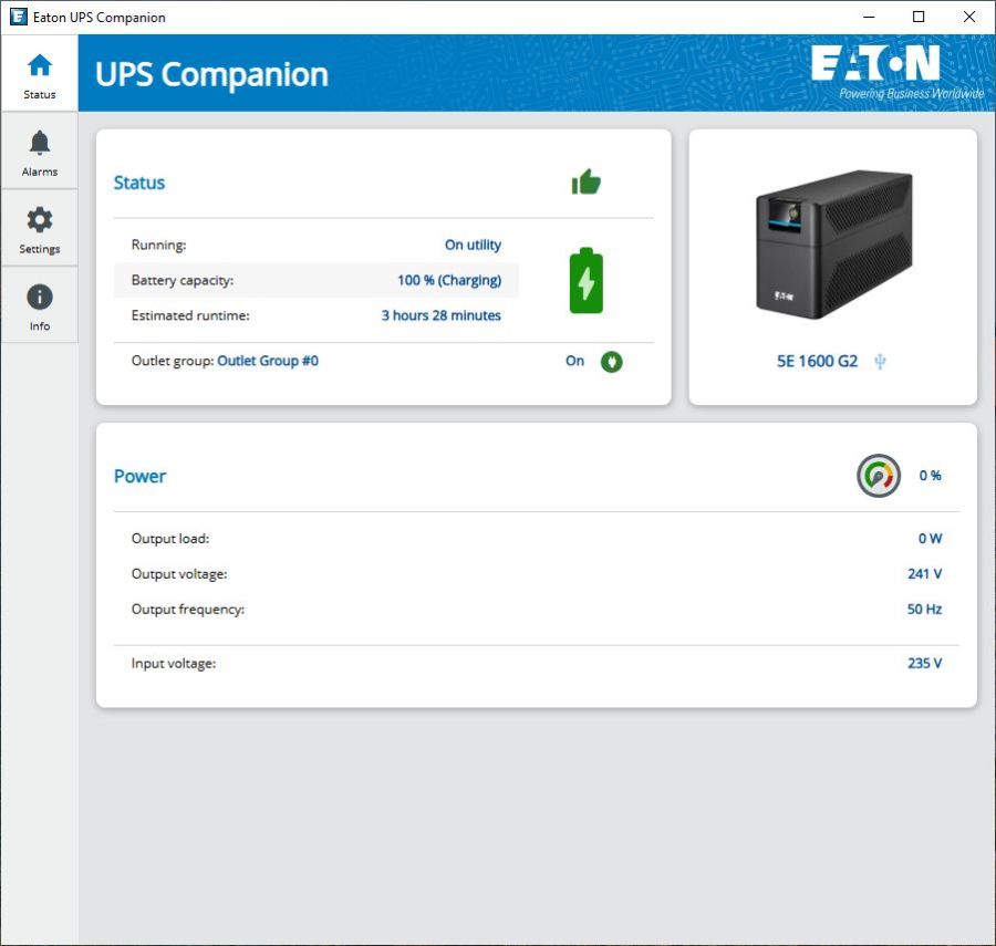Eaton has redesigned their UPS companion software and so in the initial tab we see a picture of the product and its status.