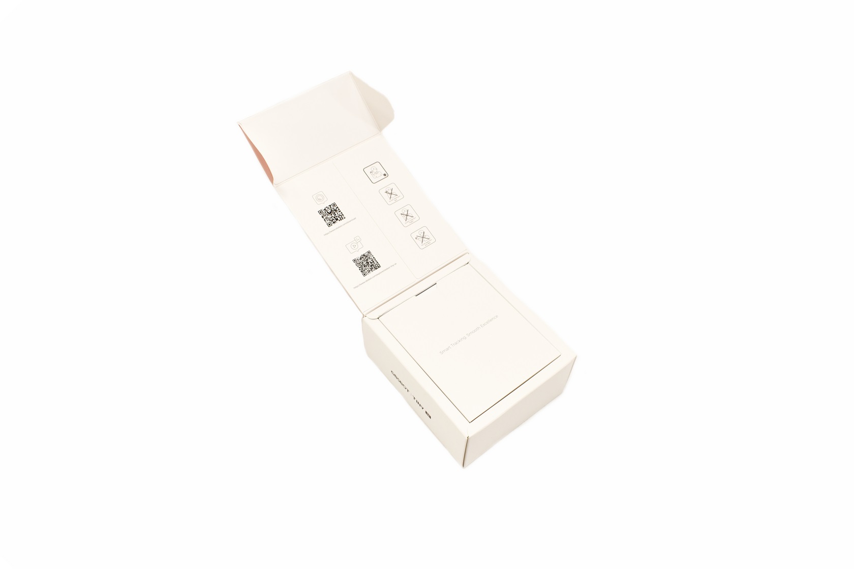 Once you open the box, you'll see several warning icons and 2D barcodes for the OBSBOT center app.
