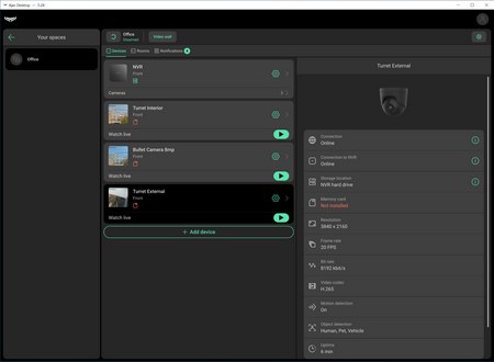 The desktop software has a similar layout as the smartphone app so on the left you can see your NVR and cameras and on the right their status.