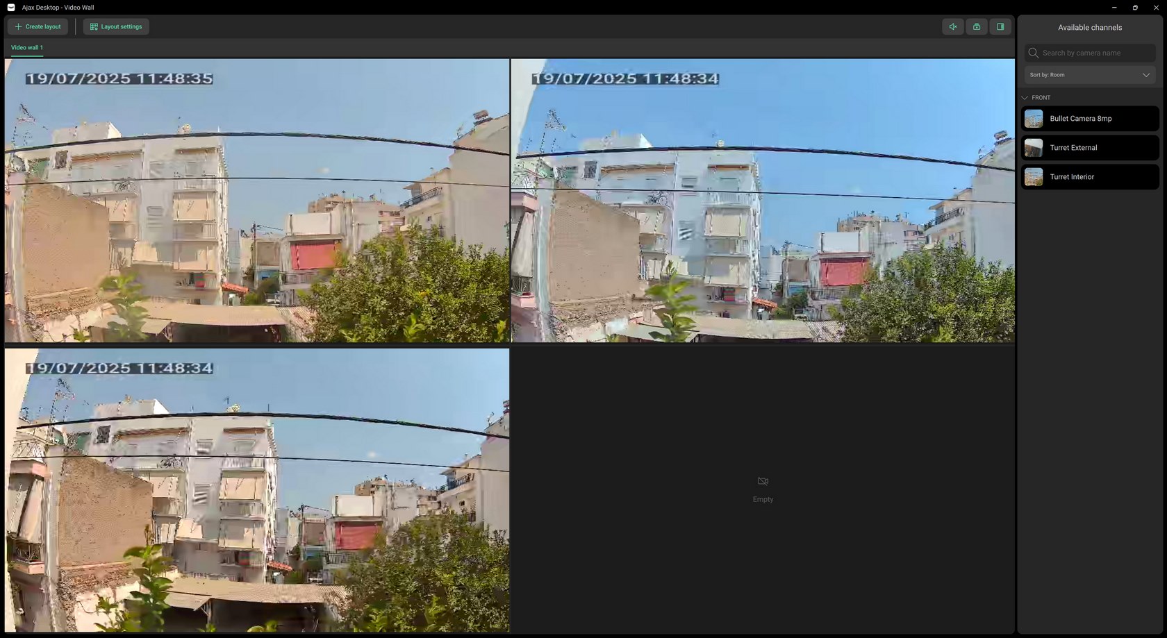The video wall function allows you to choose one of the 8 available layouts or create your very own. Also just like the smartphone app all cameras display low-quality live feed on the video wall.