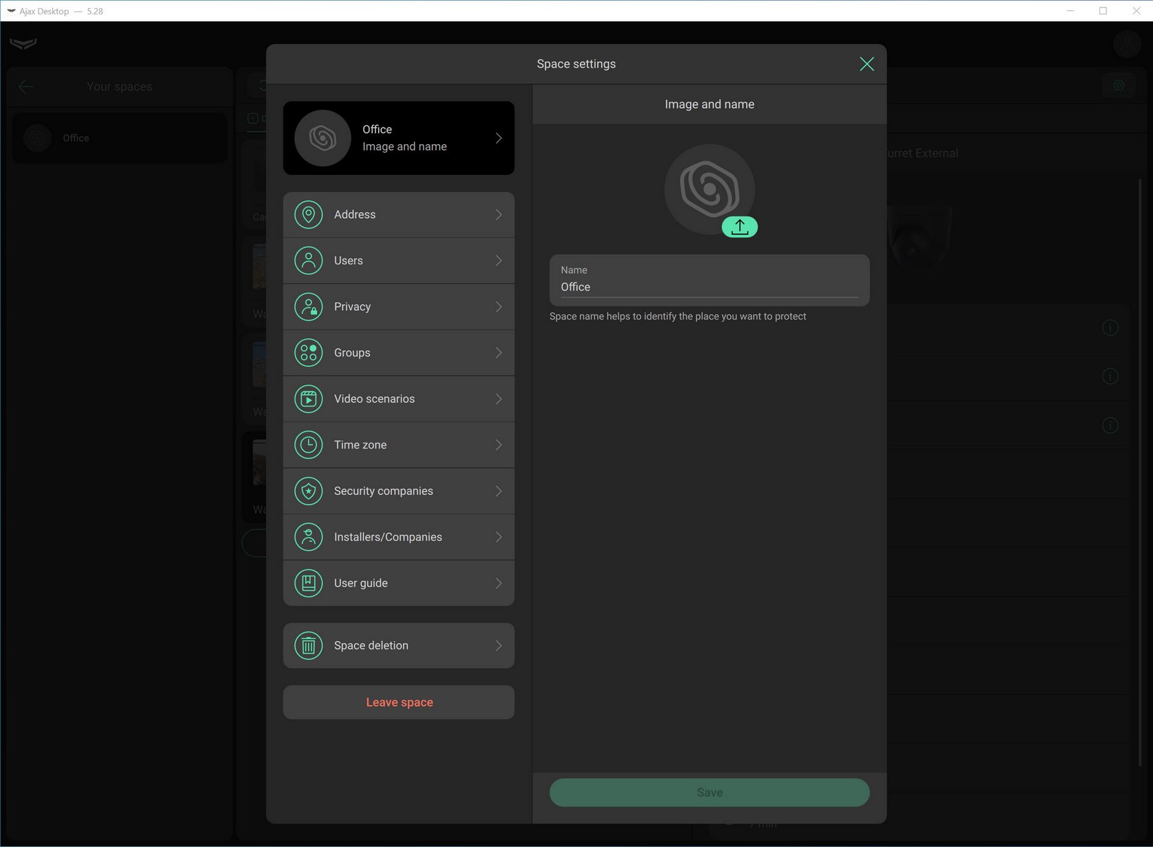 Finally, just like the smartphone app you can customize your space settings here as well.