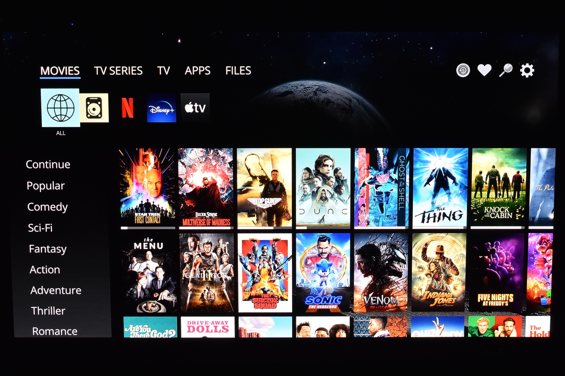 Initial tab lists several available movies both from streaming services and available in your local collection (same goes with the TV series tab - for some reason Dune HD removed the screenshot feature so I had to use my camera for this).