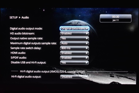 Inside the audio tab you have options like digital output (original bitstream or PCM), sampling rate, HDMI and S/PDIF audio out and of course the Hi-Fi audio out.