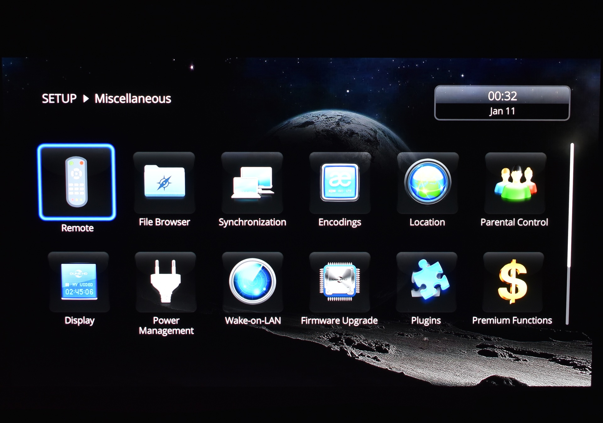 Miscellaneous options related to the remote control, file browsing, synchronization between devices, encodings, location, parental controls, LED display, power, wake-on-lan, firmware updates plugins and more are available from this tab.