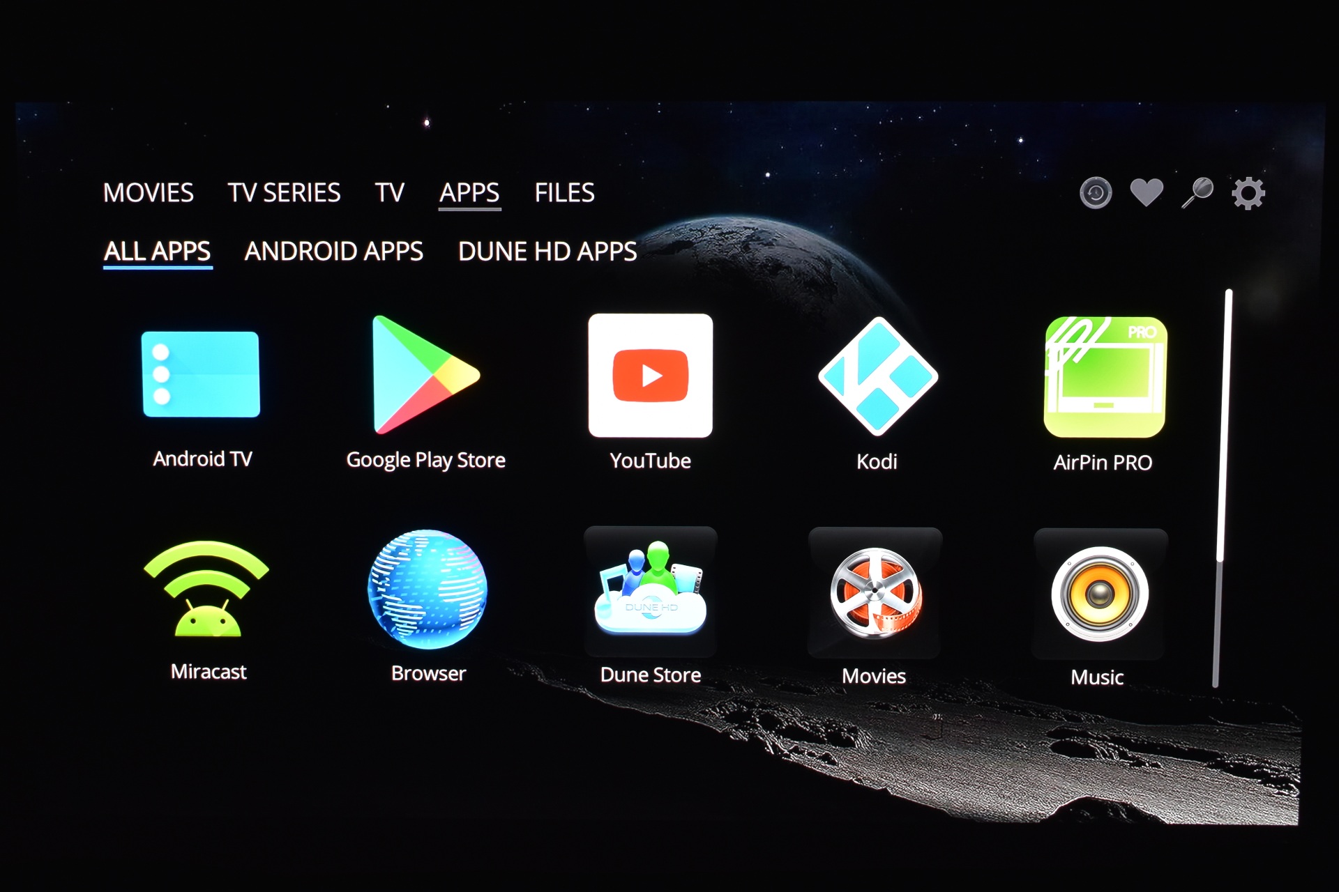Since I don't use the Dune HD to watch TV online next tab is the apps one from where you can see all installed ones, both Android and Dune HD (and add more).