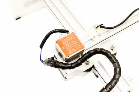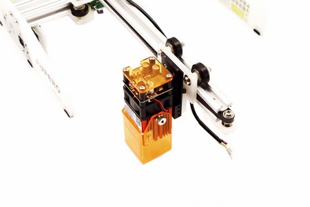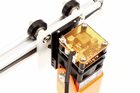 Laser modules are mounted at the front and move front, back, left and right thanks to NEMA 17 stepper motors.