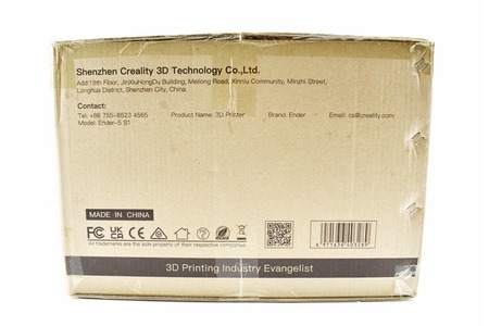Creality ships the Ender-5 S1 inside a plain cardboard box that has the product line, product name and a product drawing on both the front and back.