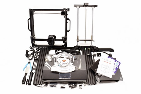 As you can easily tell the bundle is very rich so aside the main 8-pieces of the Ender-5 S1 (base with power cord/printing bed with 2 plastic supports/extruder/z-axis/4 supports with diagonal bracings/2-piece material rack) inside the box you'll also find cutting pliers, 2 small wrenches, 5 Allen keys, screwdriver, scrapping blade, nozzle cleaner, 5 cable ties, SD storage card, USB card reader, 5 cable clips, bending harness, blue wire clip, 200g filament, spare nozzle, Teflon tube and 36 screws.