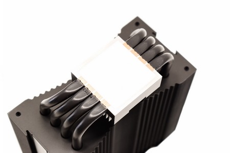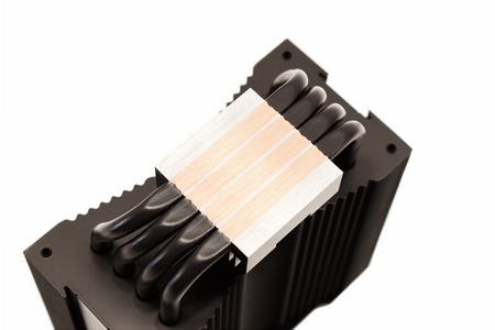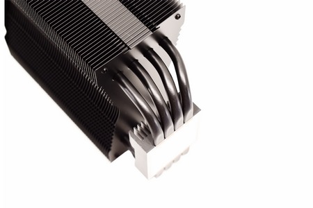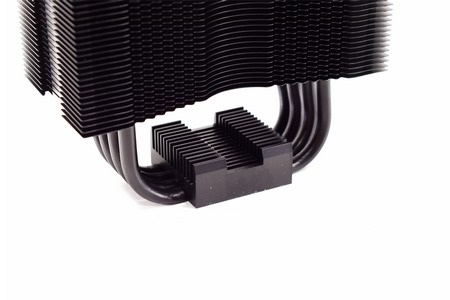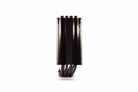 Four 6mm thick black coated all-copper heatpipes pass from the base and all 55 aluminum fins.