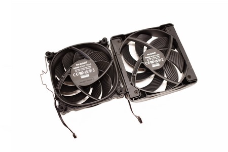 The middle fan on both coolers is attached to the top and in order to remove it you will have to remove the magnetically attached covers seen above.