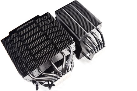The wave contour fin design is featured only at the rear of both coolers (this design increases air circulation and contributes to high convection efficiency).