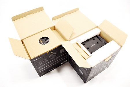 Although the fan of the Dark Rock 4 is placed separately than the heatsink (the heatsink is placed inside two pieces of foam) the fans of the Dark Rock Pro 4 are both mounted onto the heatsink.