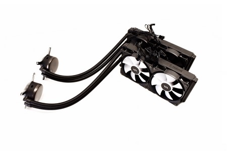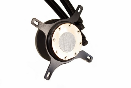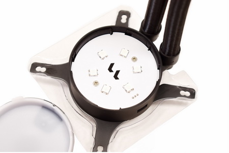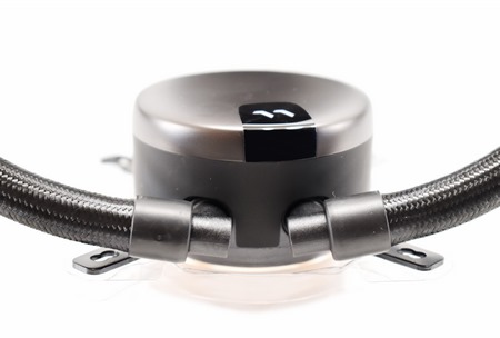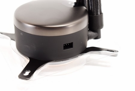 Between these two metal plates (top/bottom) Fractal Design has placed a high-RPM (4000RPM) ceramic pump that has an MTTF (meantime to failure) of 50.000 hours.