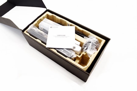 The AuraFlow X 240 arrived inside a box with a glossy cover that has a large and complete product picture at the front right over its main features and name.