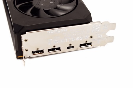 Moving at the front of the card we find two DP v2.1 ports (up to 4K/480Hz - 8K/165Hz), HDMI v2.1 port and a USB-C port.