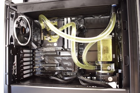 Replacing the stock silent wings fans with the light wings, mounting the tubings and filling the reservoir with the yellow EK liquid was the finishing touch.