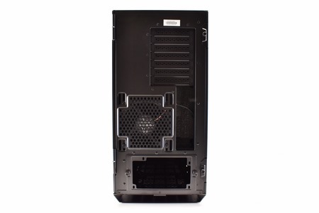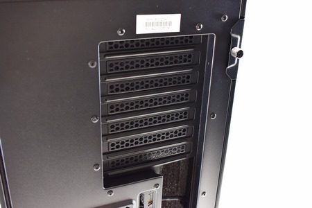 Moving at the rear we find 7 PCI expansion slots, 120mm NIDEC fan (can be replaced with an 140mm fan) and the PSU area.