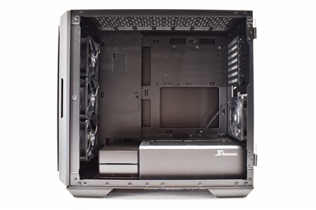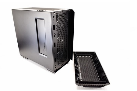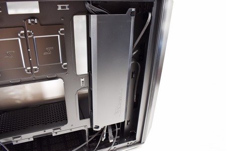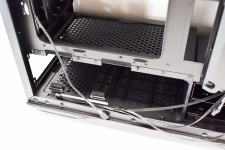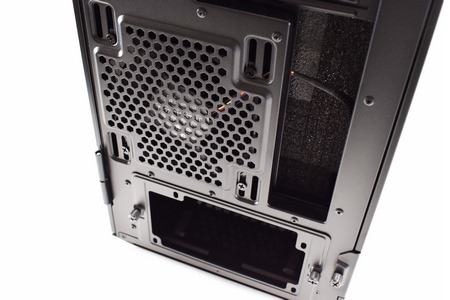 What stands out at the base of the case is the PSU shroud (on which you can mount a single 120mm fan) and the removable dual drive cage (2x2.5/3.5").