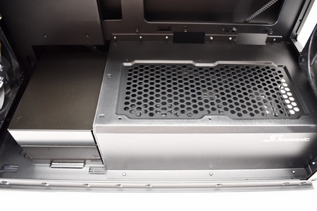 Because of the module you don’t need so much space in front of the PSU, still since some consumers may just pair this case with another PSU Seasonic left quite a bit of empty space here.