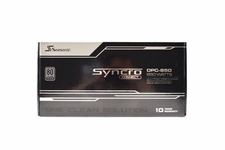 Seasonic uses a silver and black box to ship the Syncro CONNECT DPC-850 inside.