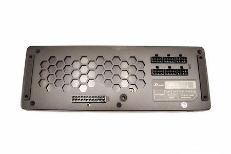 As for the plastic module as you can see it has an PSU input and numerous outputs for seven fans, four Molex/SATA power cables, two 8pin CPU cables, sync cable, 24pin motherboard cable and six 8pin PCIe cables.