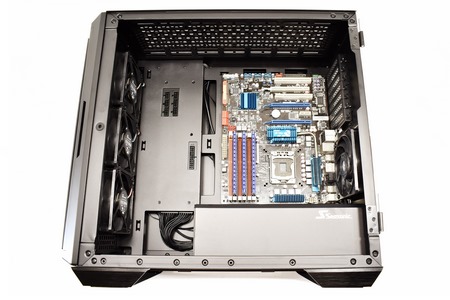 Using even an E-ATX sized motherboard still leaves plenty of room on the motherboard tray.
