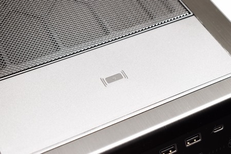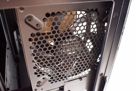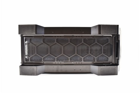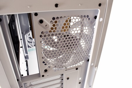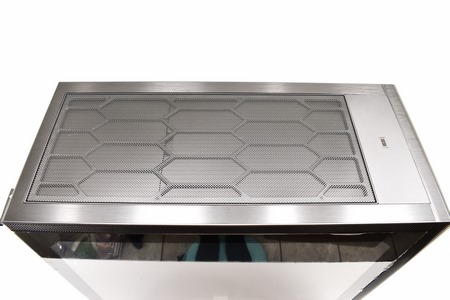 Moving at the top we find a grill and two noise insulated pieces right beneath it which are of course removable if you decide to install fans or an radiator at the top.