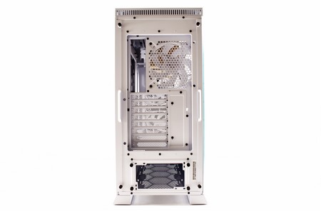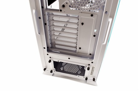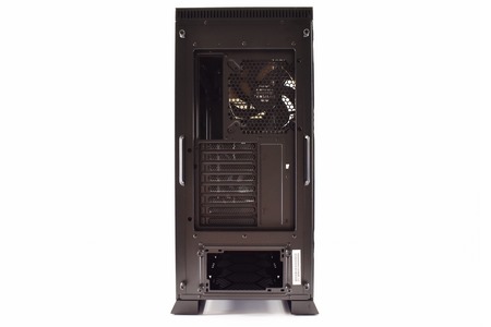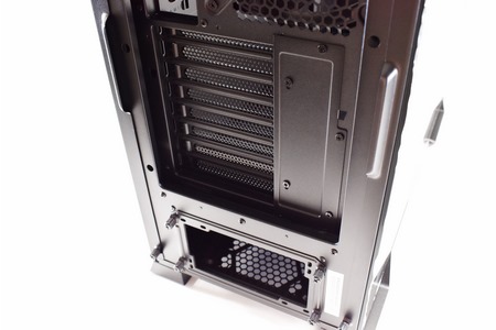 Turning the case around we find another 140mm Silent Wings 4 PWM fan, 8 PCI expansion slots (which you can inverse or place horizontally depending on your setup) and the PSU area.
