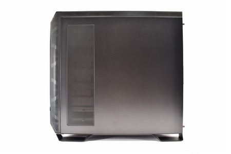 The right side panel is made out of steel and as expected since there's room on the motherboard tray for another radiator it has a perforated section.