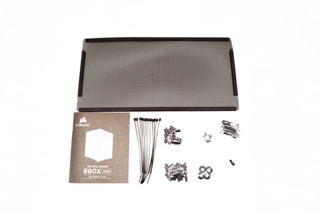 The bundle of the CRYSTAL 680X RGB includes a magnetic air-filter, 12 cable ties, 5 small plastic bags with screws and spacers, a single standoff and the user manual.