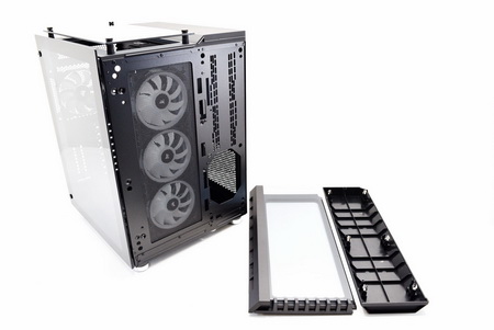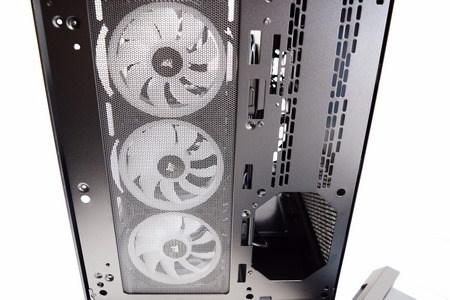The top tempered glass panel is held in place with thumbscrews and beneath it there's room either for two 120mm/140mm fans or a single 240/280mm radiator.