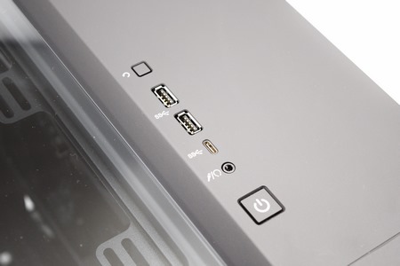 The I/O is located just over the plastic section of the fascia and it includes the on/off power button, reset button, headphones/microphone port, two USB 3.0 ports and a USB 3.1 Gen-2 Type-C port.