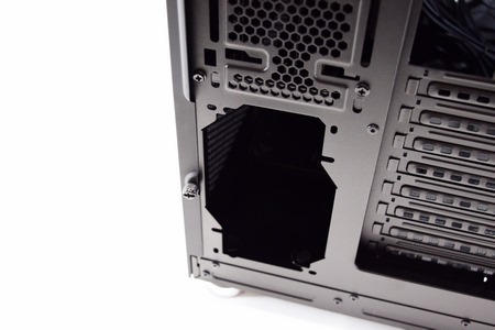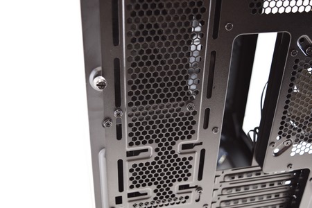 The right side panel is made out of steel and features a large perforated area with a magnetic air-filter (fans can't be mounted here).