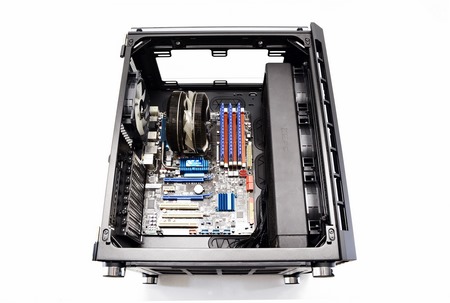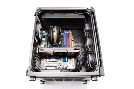 Unless you plan on using a very long graphics card you can even mount a thick 360mm radiator at the front area (we used a 56mm thick one for this review - still that leaves less than 270mm for a graphics card).