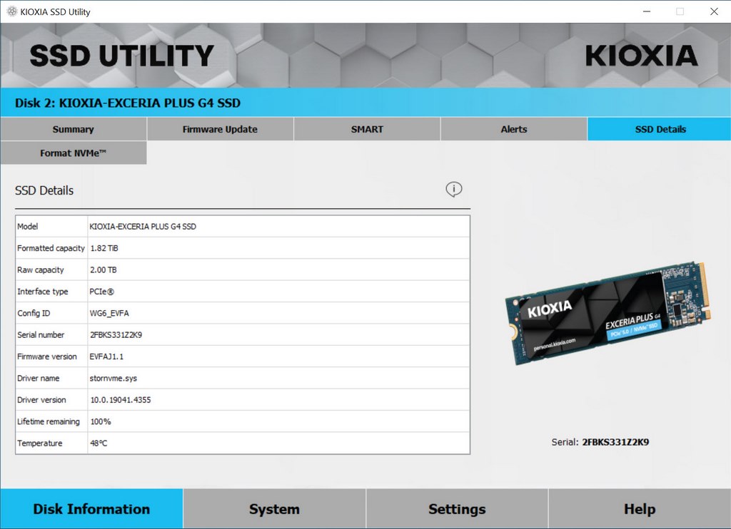 The SSD Utility by KIOXIA allows you to monitor your Exceria Plus G4 so I do suggest downloading it.