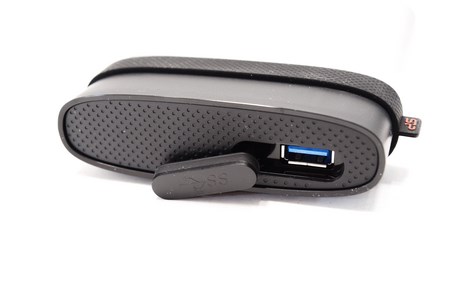 Moving at the top we find a small cap which is used to protect the full sized USB port.