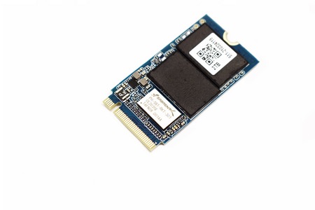 On the other side we find two more NAND flash modules under a sticker with the product serial number, 2D barcode and capacity.