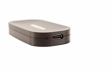 The USB-C port is placed on the left side of the aluminum enclosure right next to the activity LED.