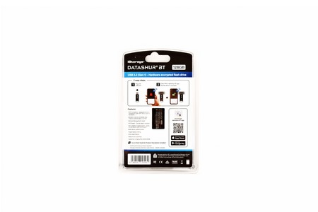 iStorage packs the datAshur BT inside a blister package from where you can actually see the drive itself along with its main features and capacity.
