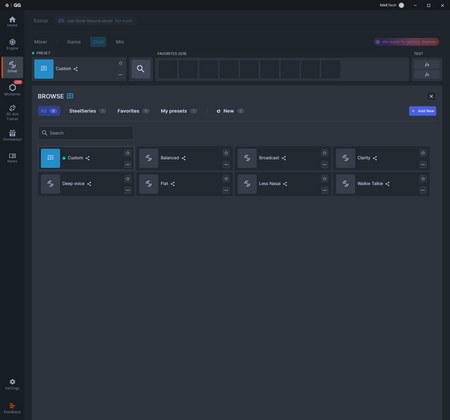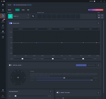 The sonar audio optimization is an important features, however you need to register a free account with SteelSeries to use it. There are 4 main tabs inside the Sonar tab the first of which is mixer which controls the volume across all of them.