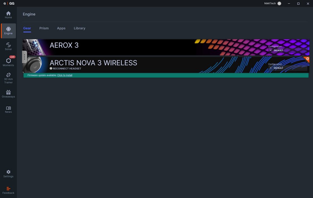 Once again this software detects available devices by SteelSeries and informs you of available firmware updates (there were for both the Arctis Nova 3P and its USB-C dongle).