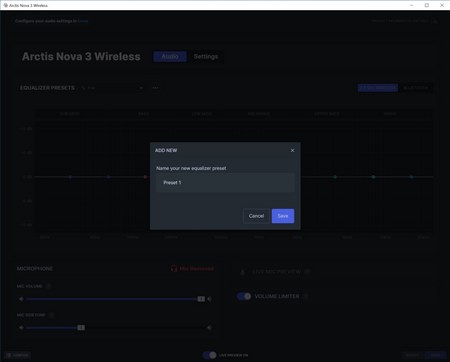 From the initial tab you can tweak the equalizer, load one of the many available presets, create your very own, adjust the microphone volume and sidetone and even enable/disable a volume limiter (normalization).