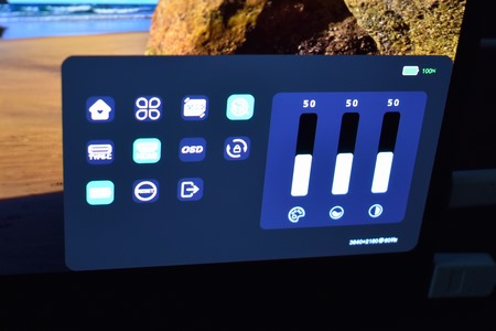 It's a very simple OSD with all the settings available from a main tab and both the battery charge and resolution displayed on the right top and bottom.