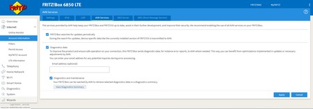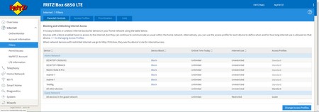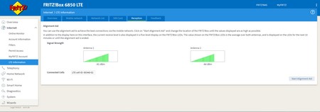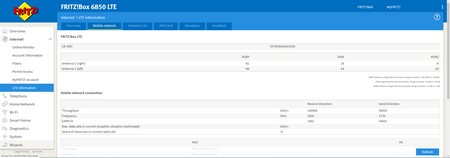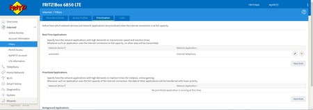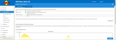 Just like with previous FRITZ!Box models via the Internet drop down menu you can check the utilization of your internet connection (amount of data send and received), setup your connection (IPv6 is supported), enable various AVM services, enable automatic firmware updates, set individual parental filters and prioritization for all connected devices, register your FRITZ!Box with AVM and finally you can monitor your LTE connection from a highly detailed tab.